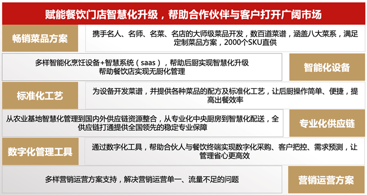 B端餐饮终端+B端加盟商,并进行6大赋能