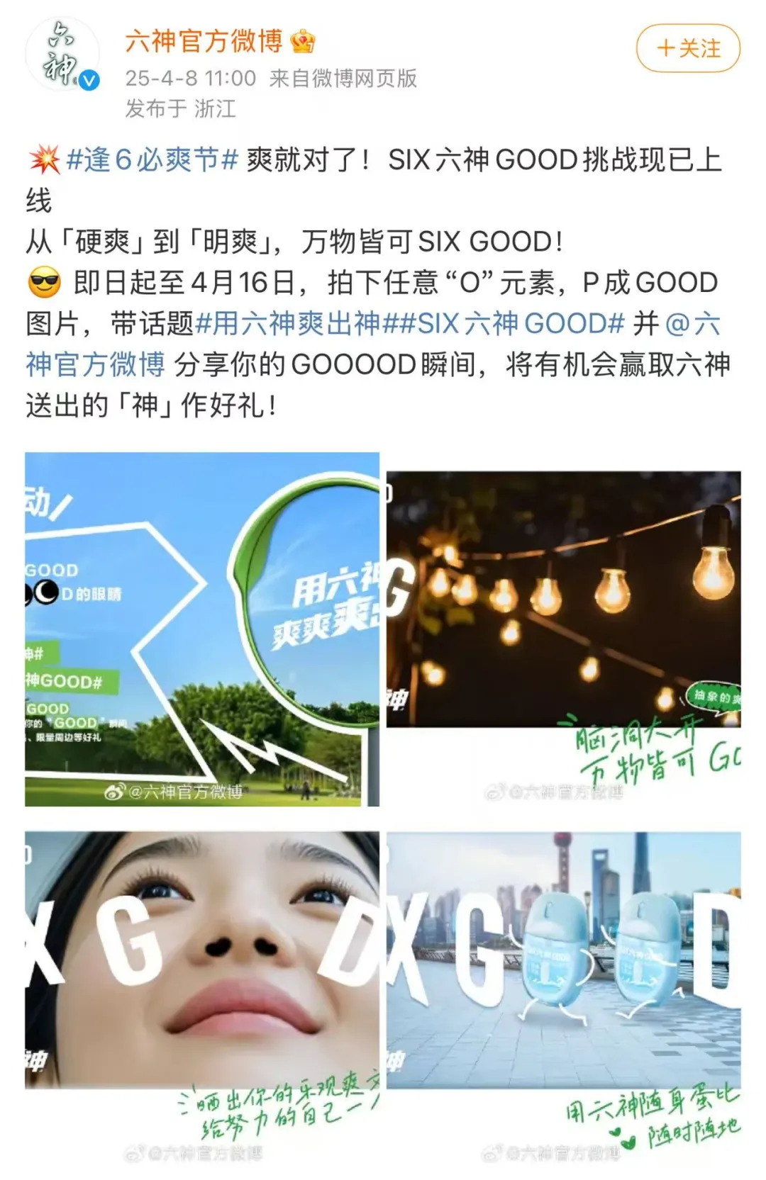 第一招:六神用「梗」当饵,让用户抢着当自来水。六神深谙当代年轻人的「反骨定律」:你可以让我花钱,但不能让我尴尬;你可以让我干活,但必须让我快乐。于是,一场「O变GOOD」的零门槛挑战,直接戳到年轻人的痛点。网友只需随手拍个「O」,P成「GOOD」就能参赛,成本低到像呼吸,但创意空间大到能装下整个银河系。大家转发时根本不在乎这是广告,只想证明「我的脑洞比你的更离谱」。六神用一场梗王争霸赛,成功让网友从「看广告的人」变身「造广告的神」,顺便把产品卖点焊进了每个搞笑图文里。