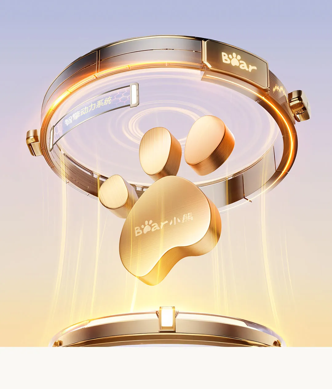而高端旗舰产品视觉,代表品牌视觉制高点,也体现品牌高度,因此我们通过产品需要树立小熊高端、性能、科技的形象,传达品牌形象和品牌理念。