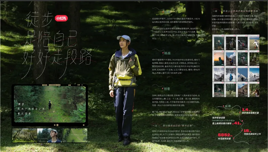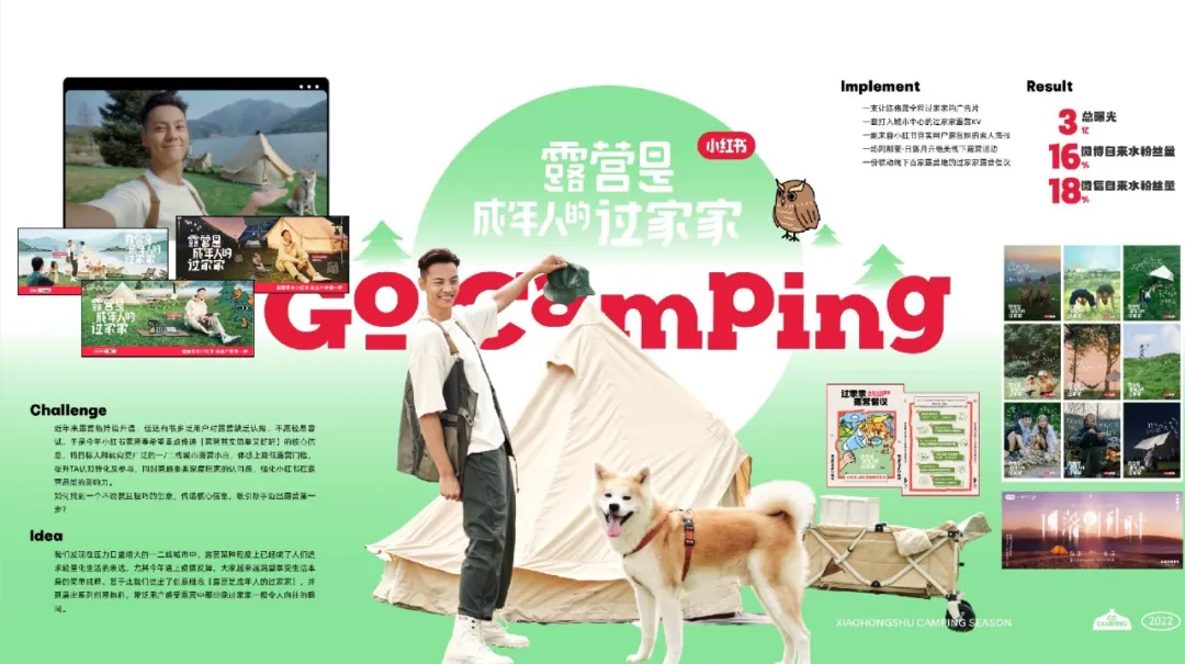 疫情时期,小红书开始户外生活方式方面的探索。但小红书希望除了已经沉迷户外和露营的群体之外,还能撬动更大的群体对露营和户外的讨论度和参与度。事实上,露营是个门槛很高的事,它需要车、装备、还有长途跋涉的时间,如何能让人们对这样一件看起来「麻烦」的事情风靡,成为这个case的重点。
