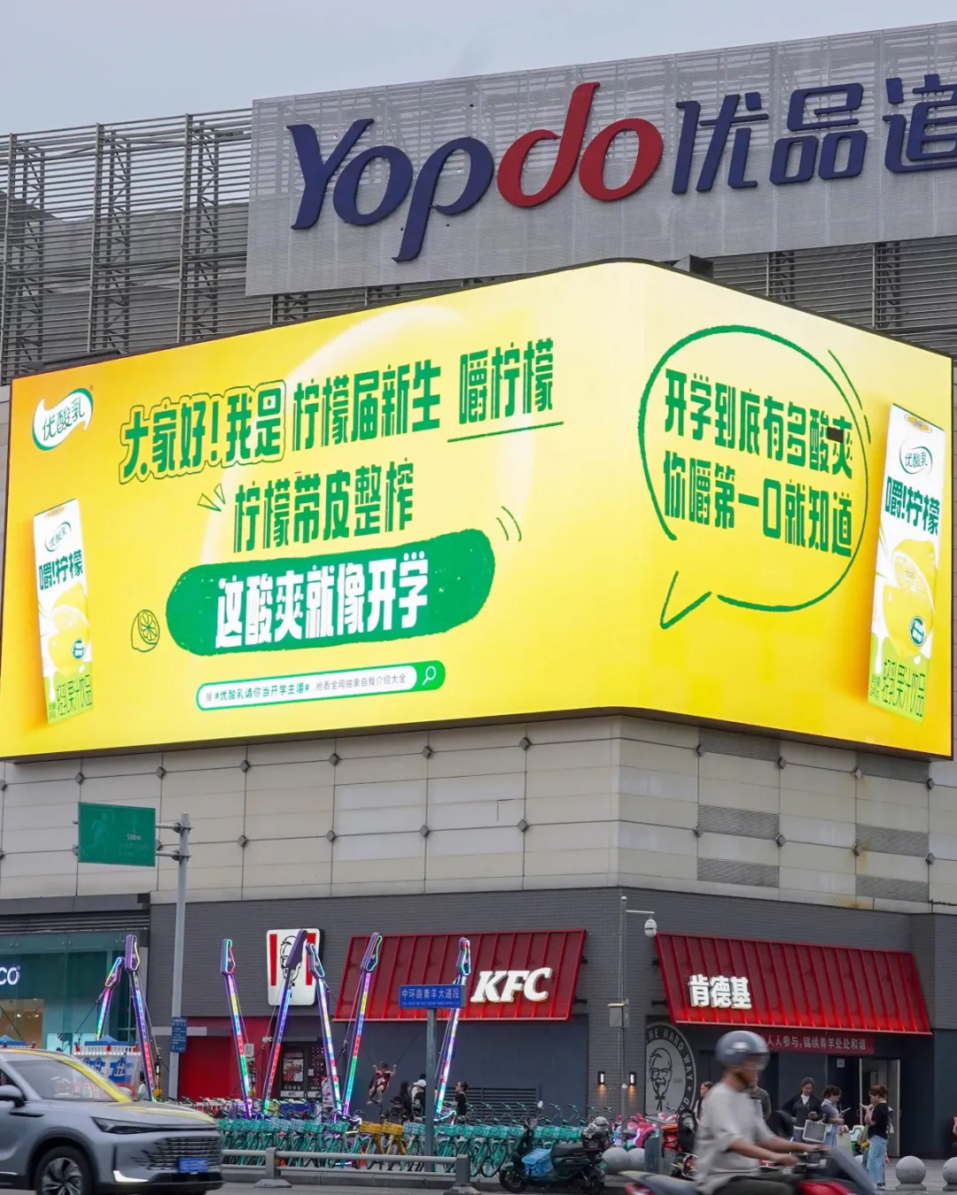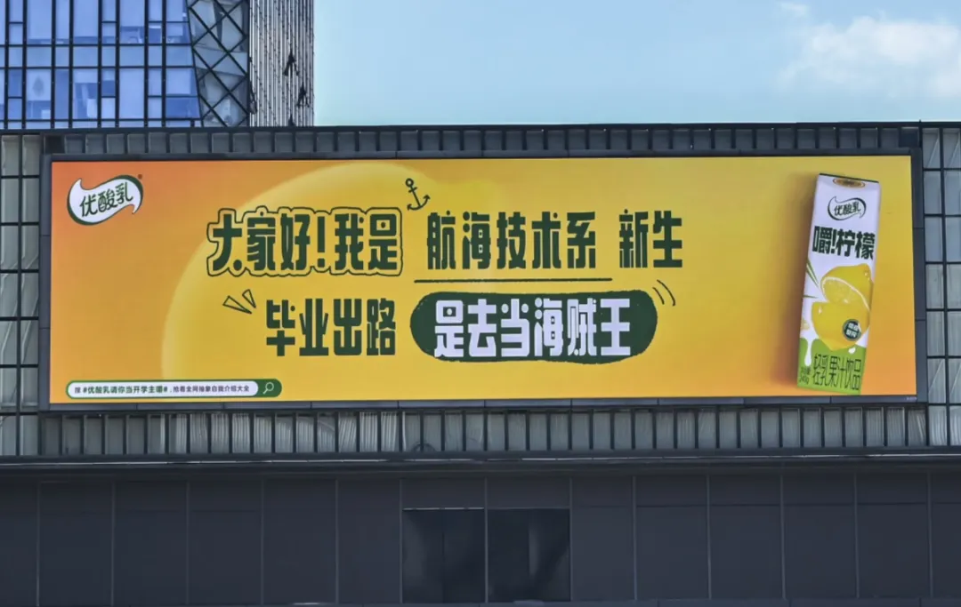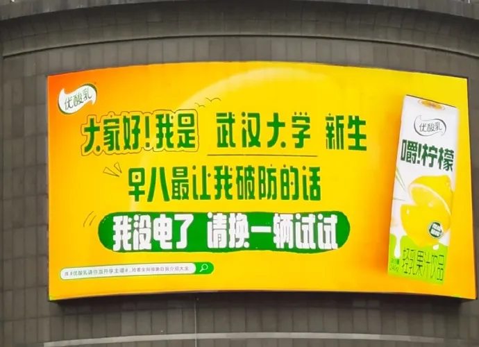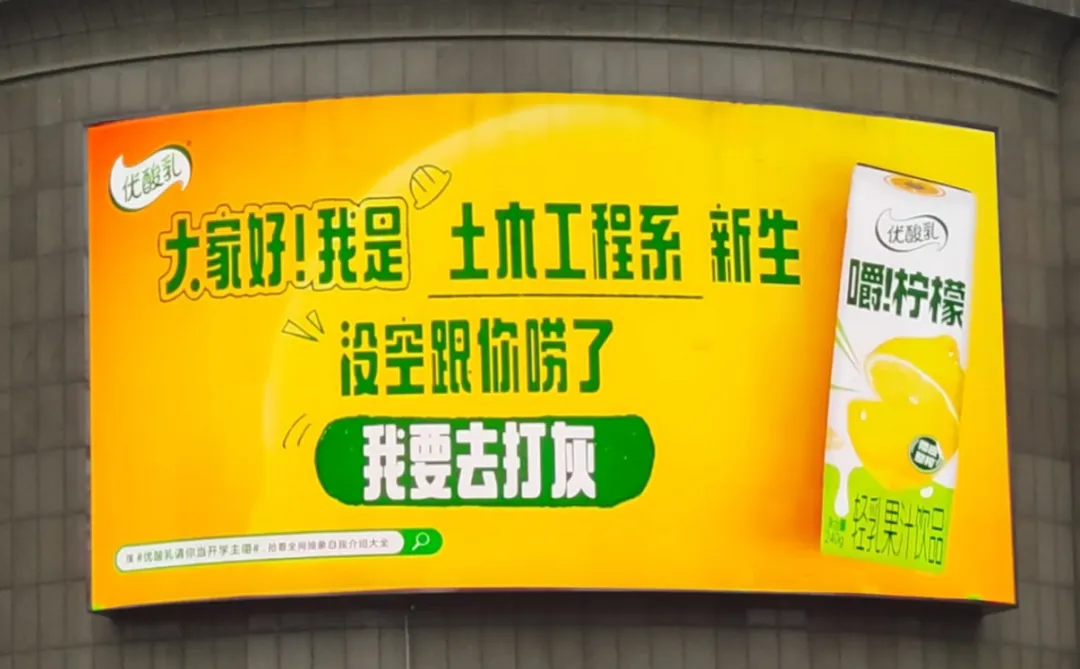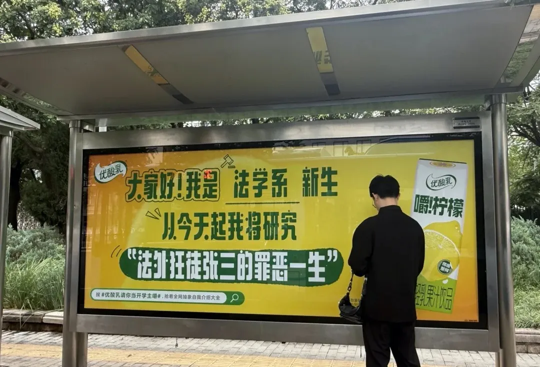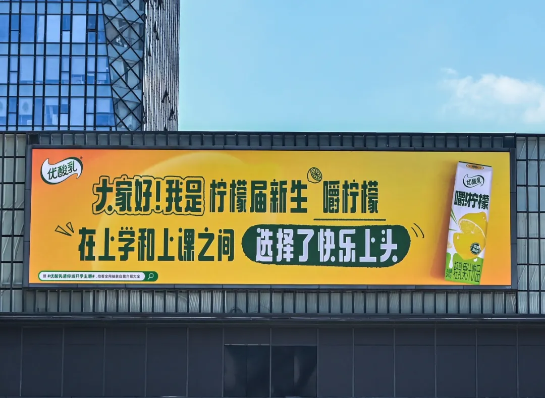 九月开学季,最近刷到优酸乳嚼柠檬的户外广告,让我眼前一亮。新生入学第一件事就是做自我介绍,优酸乳也混迹其中,介绍起嚼柠檬产品,每句话都十分有梗。