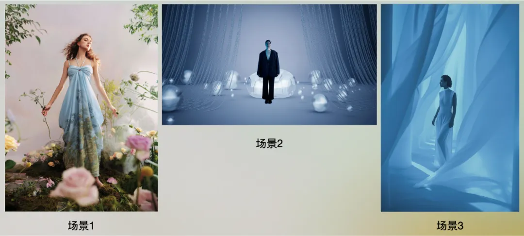 在《创意穿搭篇》中,通过人物在3种意境中穿梭探索,呈现多元的LOOK和产品细节,为消费者提供穿搭灵感。
