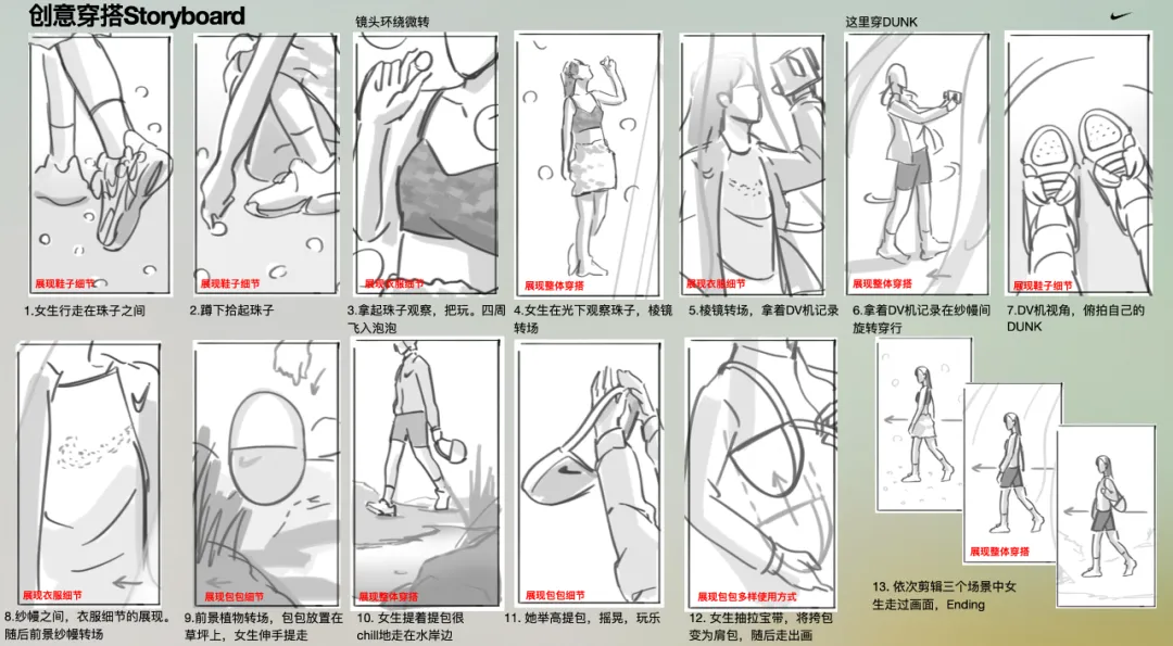 在具体执行中,通过人物动势结合棱镜转场,让穿搭切换更显自然。同时借助DV道具和自拍动作,进行更多局部的特写展示。背包配饰结合人物动作,同样也展示了更多穿搭的局部细节,给消费者更多灵感。