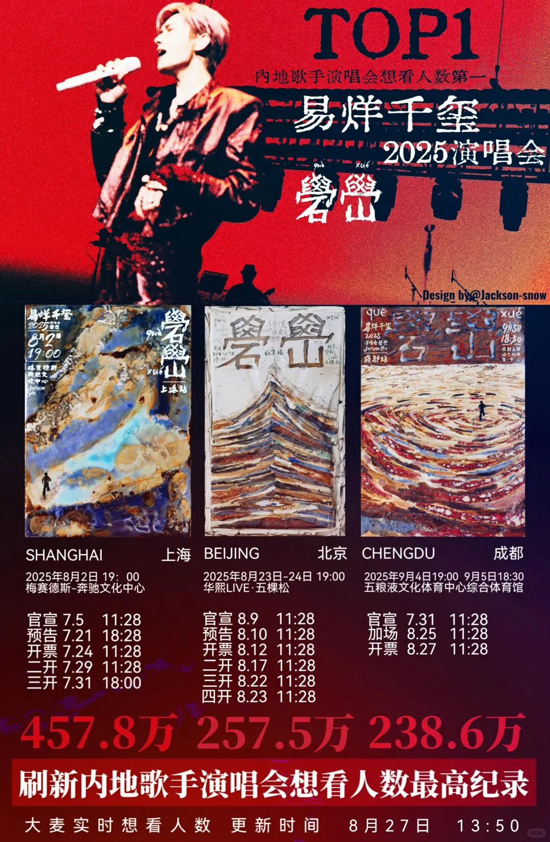 此次演唱会刚官宣不久,就成为了大麦内地歌手演唱会想看人数第一的演唱会,火热程度不言而喻。