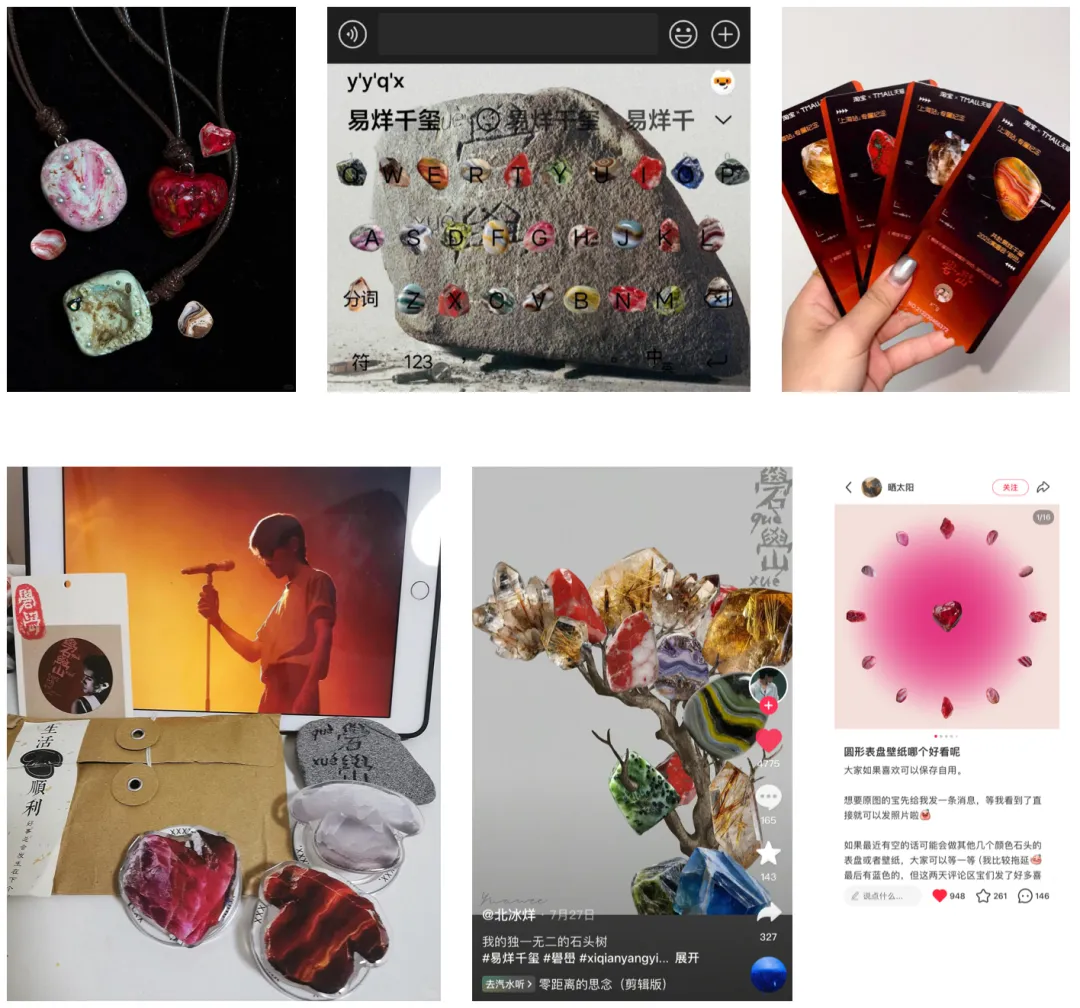 山花石(呼应易烊千玺的新歌《山花》)、小羊石(易烊千玺手绘卡通形象)、爱心石、玫瑰花石……这些都被聪明的粉丝们一眼识别,成了热门收藏款。