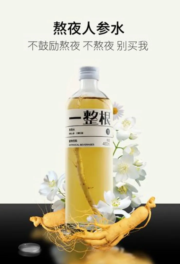 《场景造需》一文中,提到过一个饮料产品——一整根人参水,其原点场景是“熬夜找补”,针对那些喜欢熬夜,并在熬夜后需要补充精力和身体能量的人群需求,广告语叫做“熬一整夜,喝一整根”。