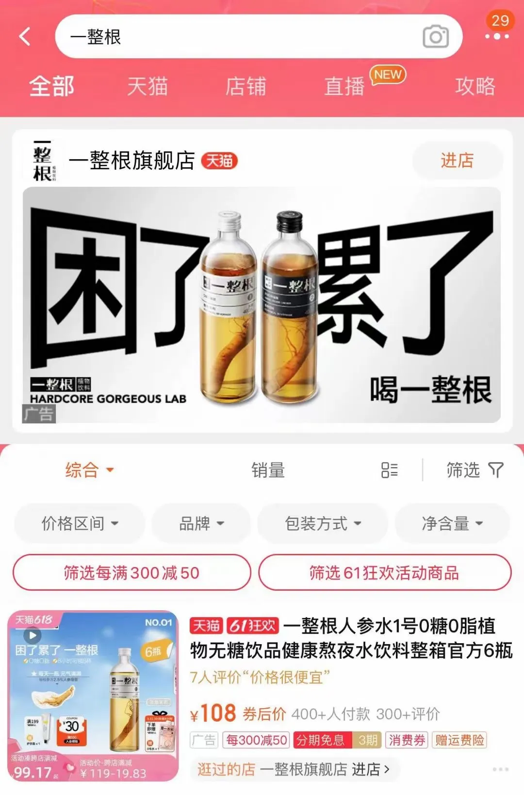 因为其产品中含有一根完整的人参,所以一整根提出了一个巧妙的消费概念——“开盖8小时,可续8杯水”。消费者享用完饮品后,还能继续利用那根人参,并且除了加温水,还可以加枸杞和冰糖等,自制创意养生饮品。