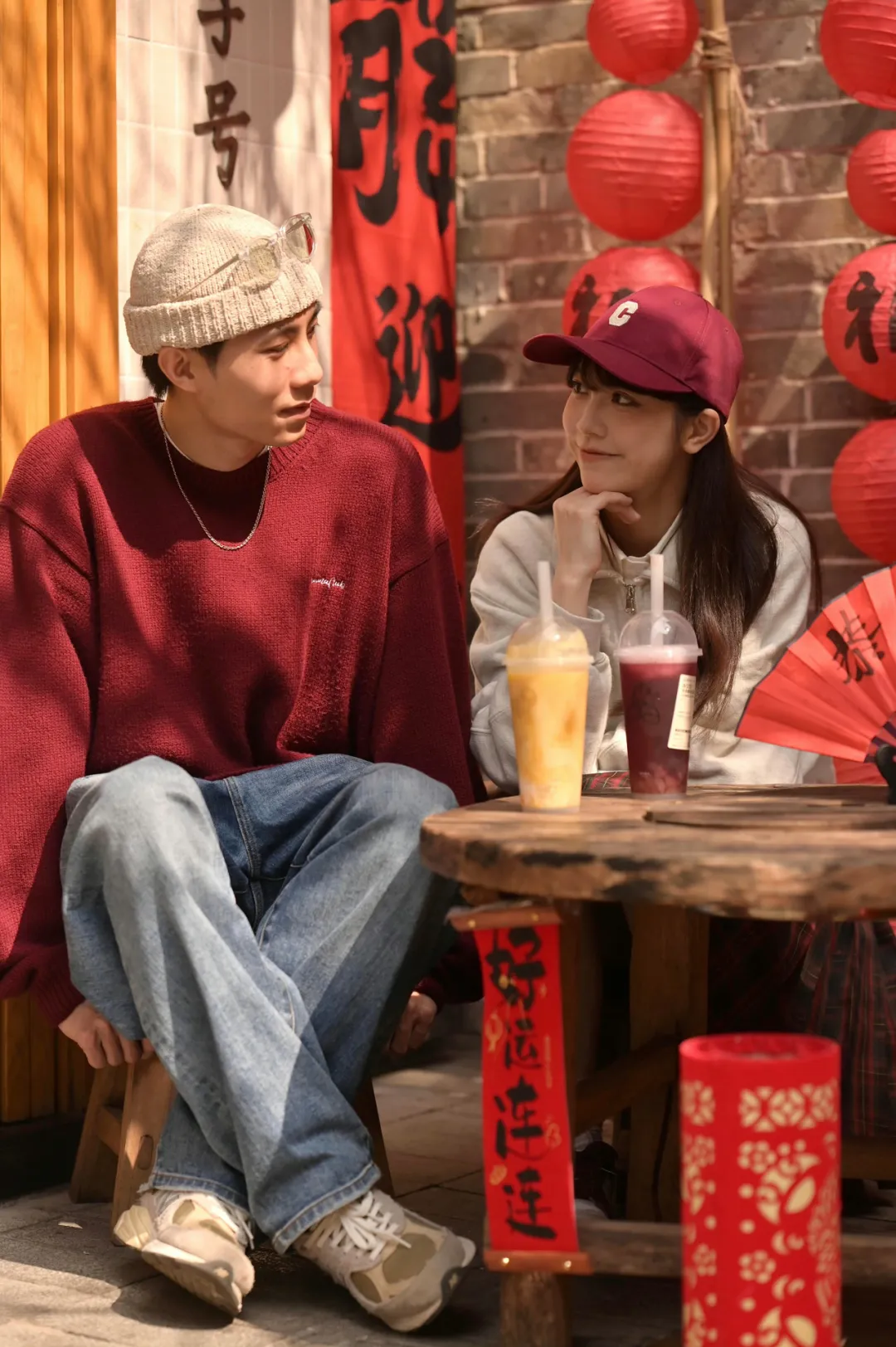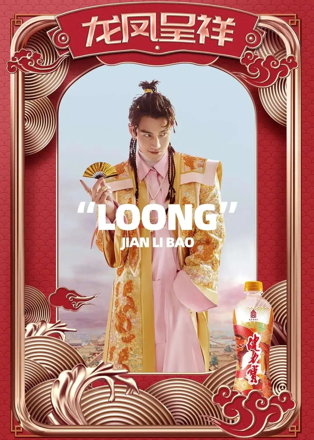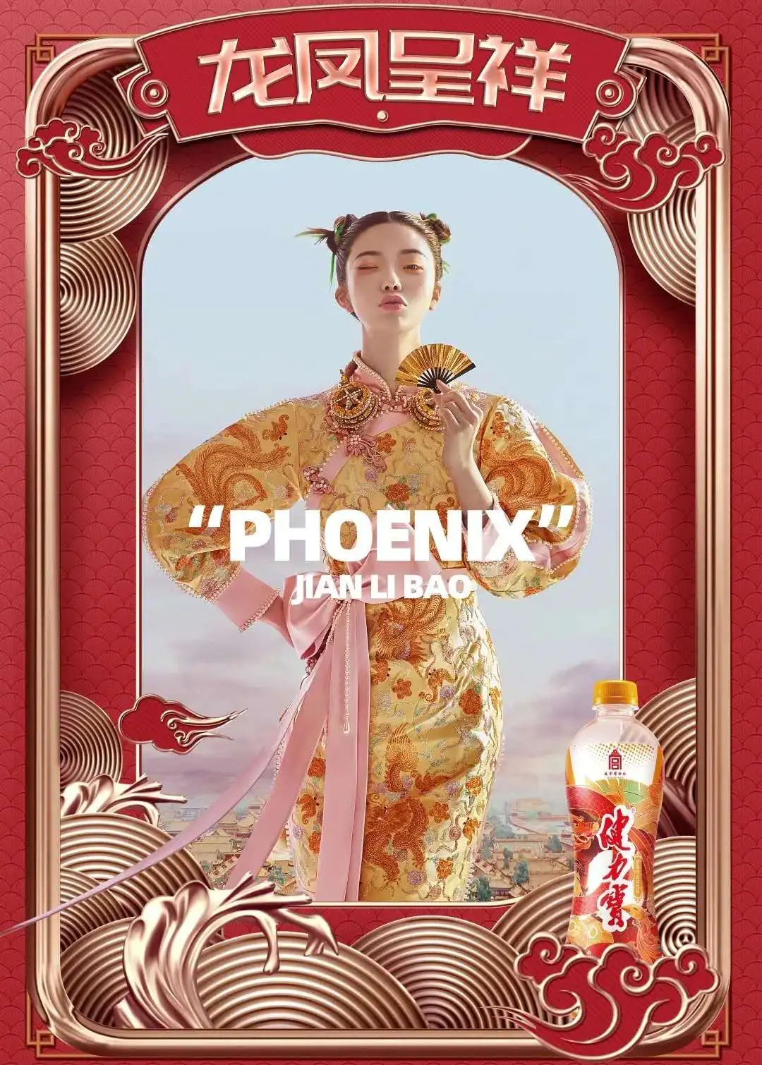 联合高端婚纱照品牌薇拉摄影,拍摄了一组国潮大片,将凤冠霞帔、传统婚服与当代时尚相结合,古色古香的国风装饰与街头小吃、健力宝相融合。