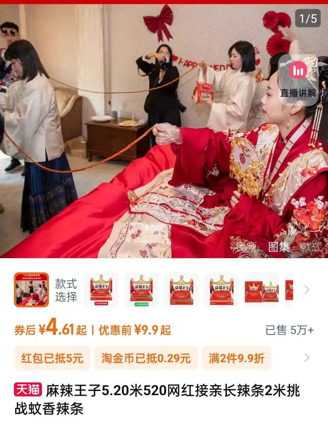 另外,做婚宴的品牌还有椰树、蜜雪冰城、好望水、麦当劳……就连辣条品牌麻辣王子,都在2022年启动了“100场婚礼计划”,给报名的新人提供辣条婚庆零食、来宾伴手礼,还有用于接亲拦门的5.20米超长辣条等。短短两年时间,麻辣王子赞助的辣条婚礼累计超过2000场。