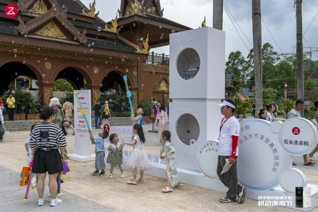 泼水节上大家玩得很开心,但是泼完只能裹着透湿的衣服回酒店更换。针对这一场景中的用户需求,石头科技将新品Z1 MAX系列洗衣机与烘干机搬到西双版纳傣族园的泼水广场上,在泼水区出口设立干衣站,所有入园游客均有机会获得烘干服务。