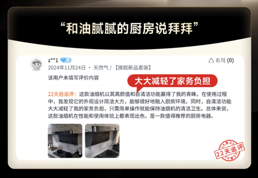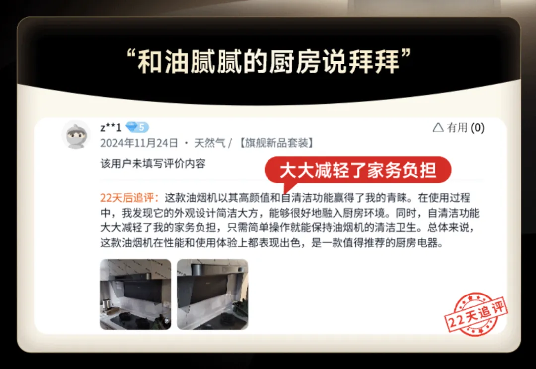 其实“燃气泄漏”和“新房除醛”就属于极限场景。对消费者来说,燃气泄漏是极小概率事件,而多数人也想不到用净烟机来除甲醛这样的操作,它也不是净烟机的核心功能价值。但就是这样比较极端、少见的情形创造了话题和流量,让人产生了极大的兴趣。
