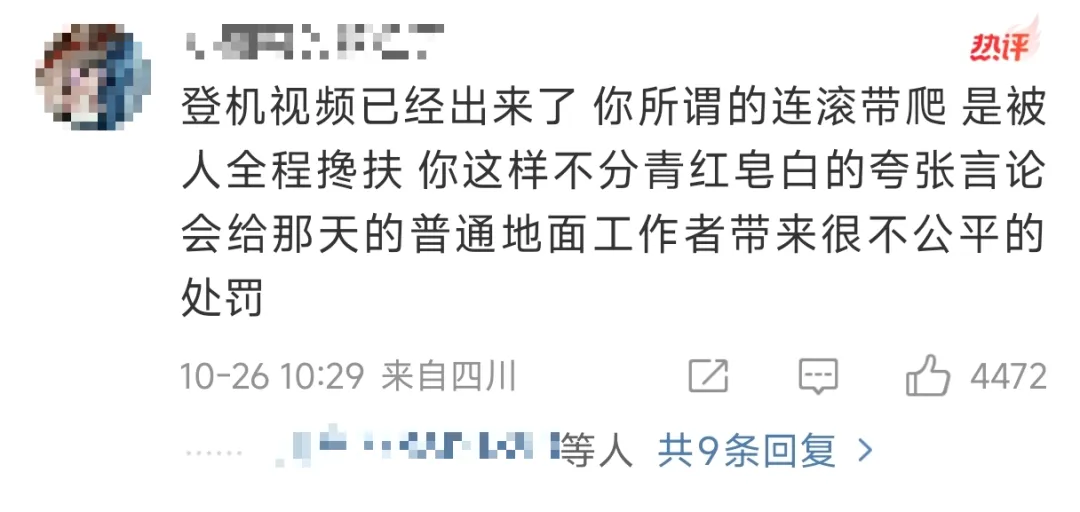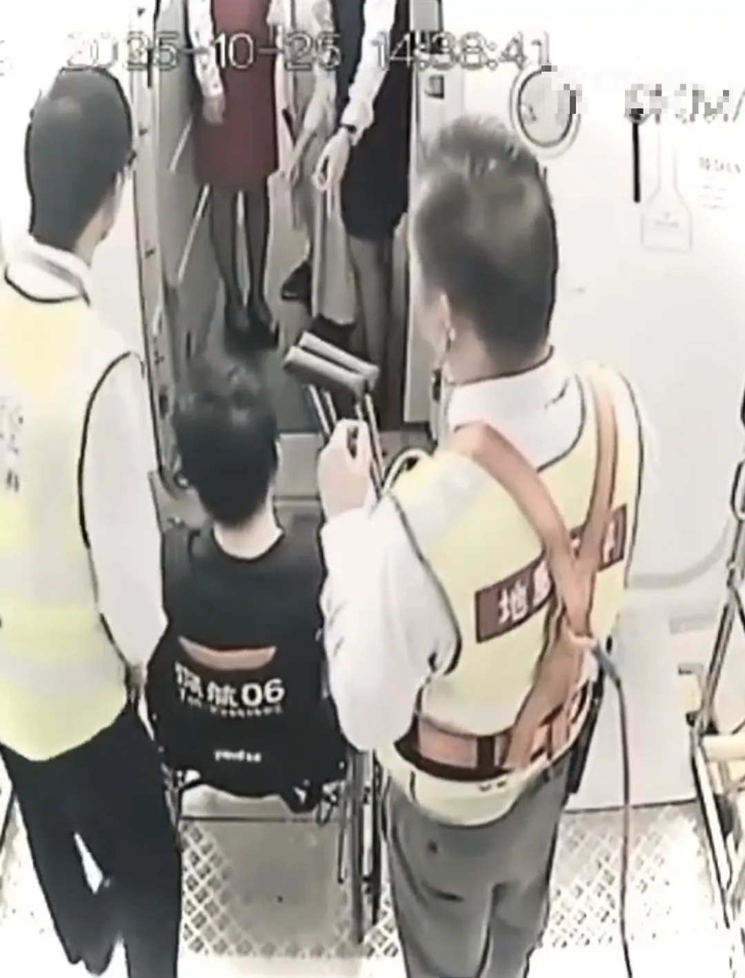 视频中,可以看出有多位工作人员在协助,与“连滚带爬”脑补图,完全不吻合。