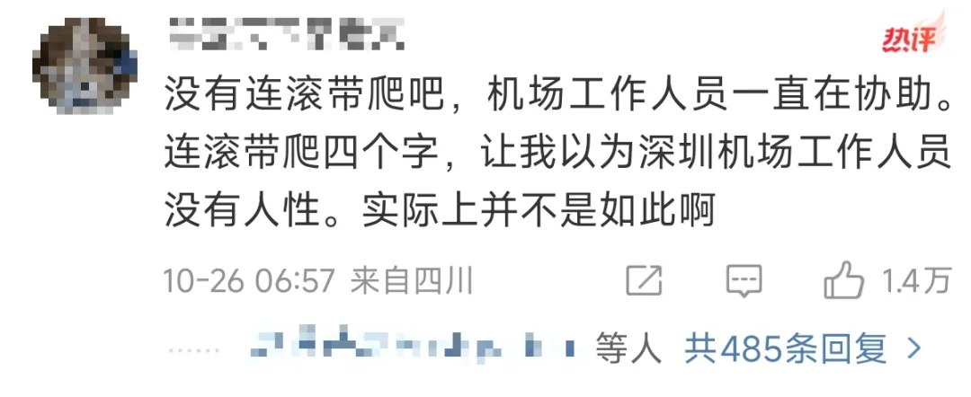 网友基本上也是按照这个方向,脑补当时场面,瞬间共情,直接开骂深圳机场。简直就是人性的扭曲、道德的沦丧。