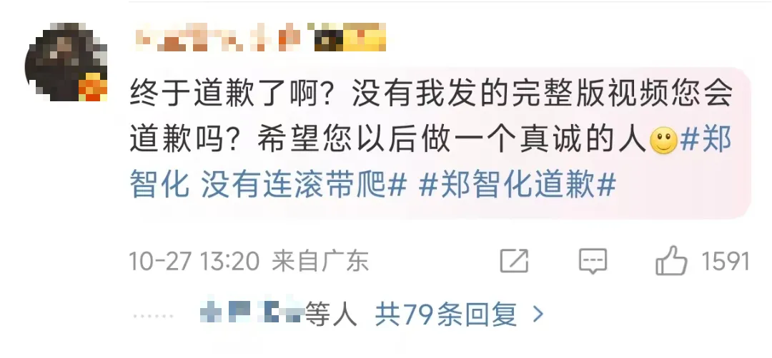 今天中午13:12,郑智化就“连滚带爬”致歉。