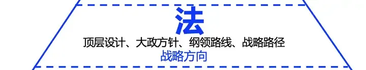在道之下是法。法是什么?法是战略方向,是大政方针、纲领路线、是顶层设计。
