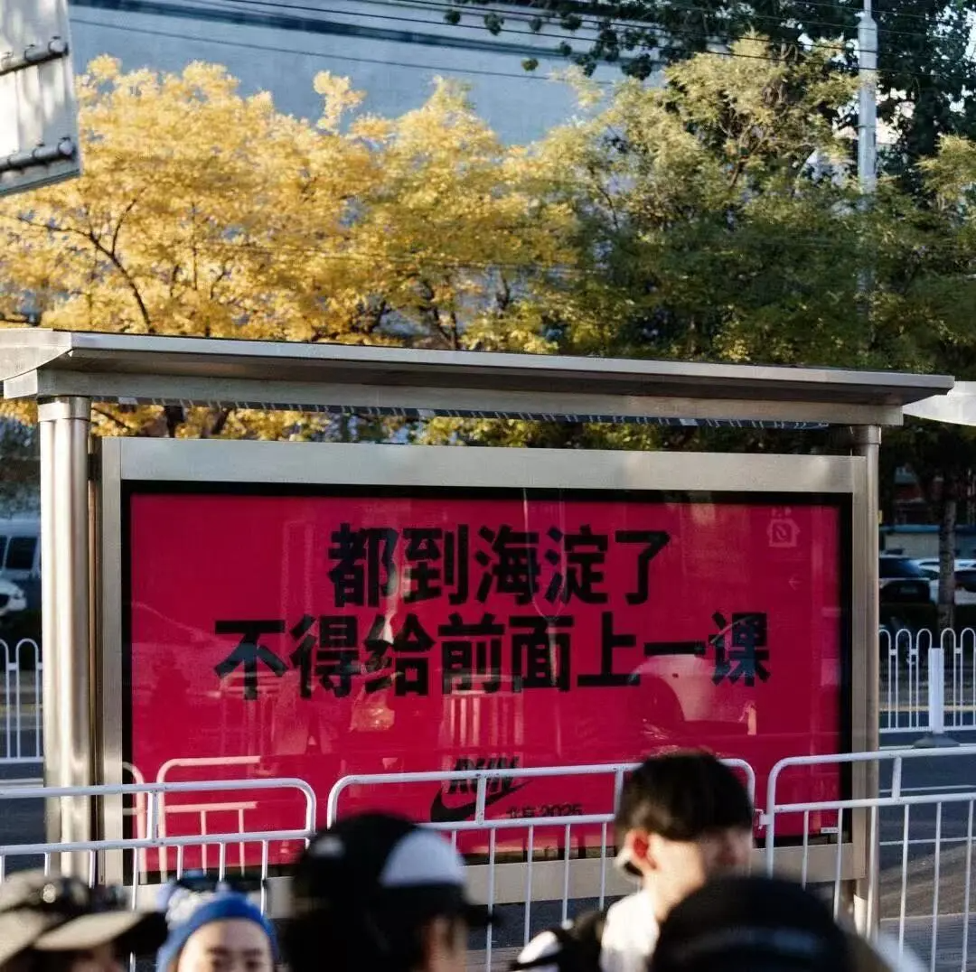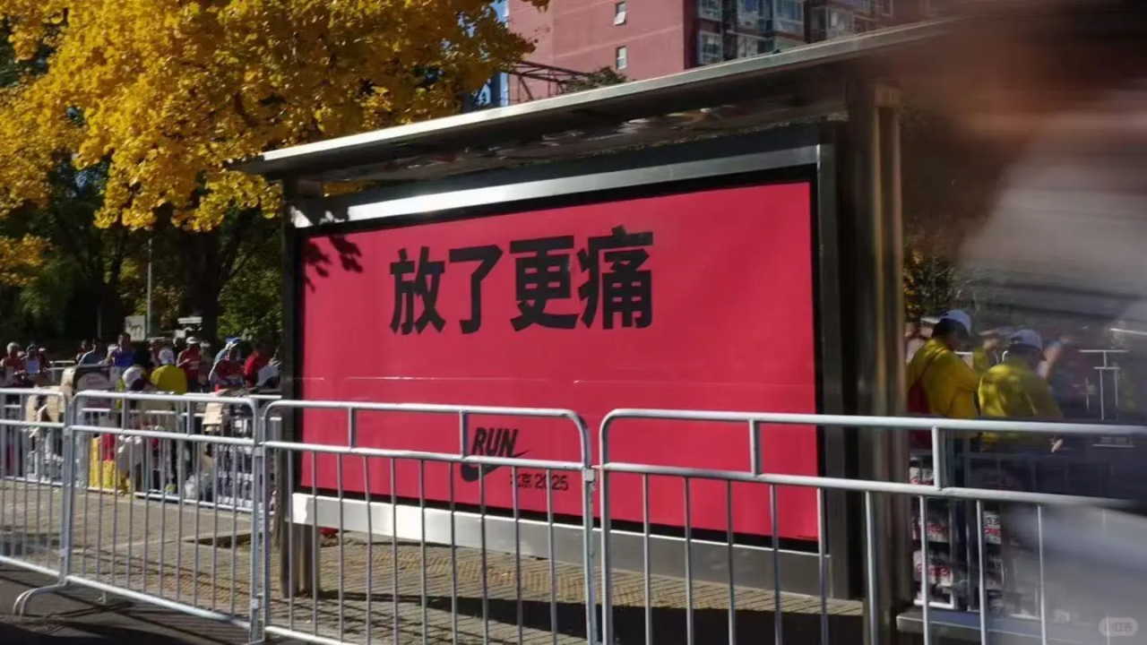 用“坚持很痛,放了更痛”直击跑者心理,结合海淀区“教育梗”引发地域共鸣,拒绝空洞加油,以“精神氮泵”式文案激活竞技斗志。