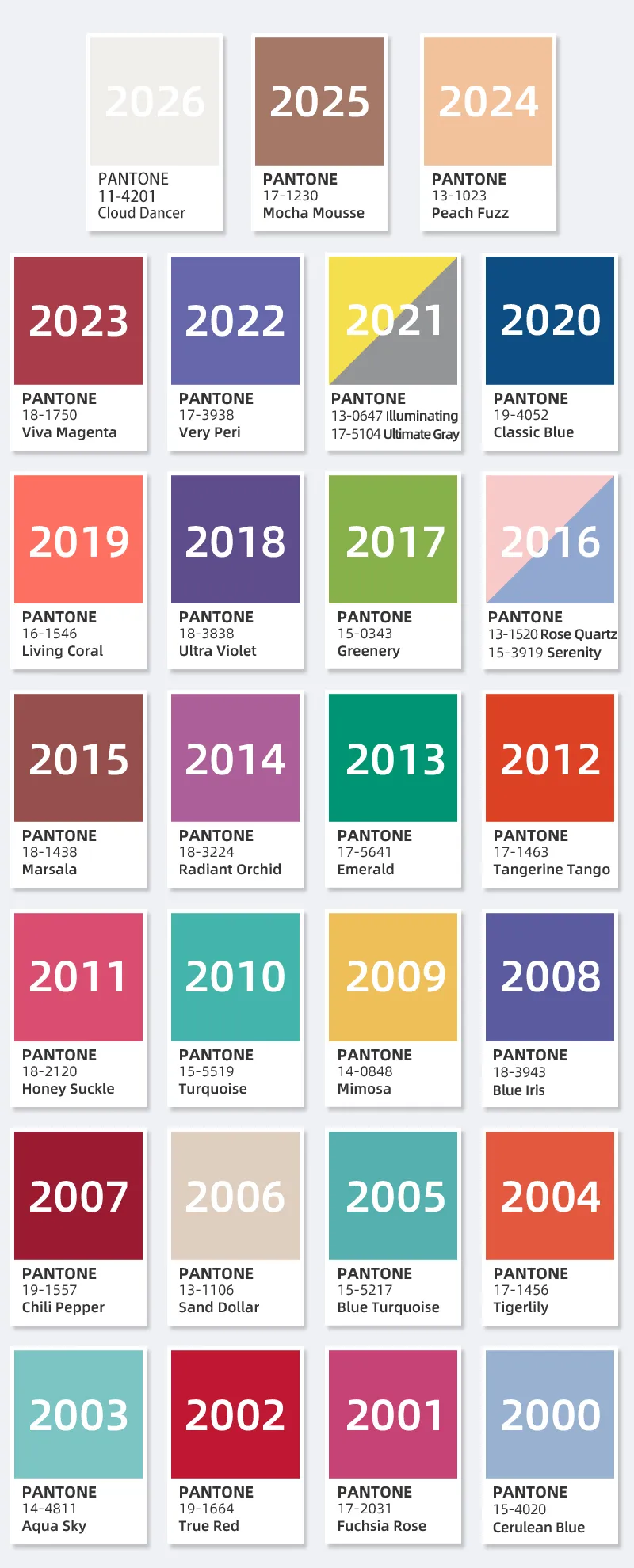 最后,回顾一下往年潘通的色彩发布吧,看看哪年的颜色你最印象深刻。