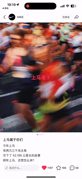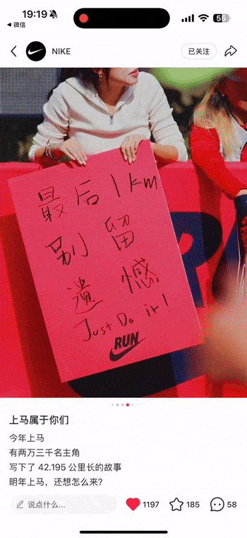 上马当晚,Nike 发布了以“两万三千名跑者”为主角的 Social Post,为 2025 上马完美收官,也为下一场#马拉松备赛试炼 吹响集合号。