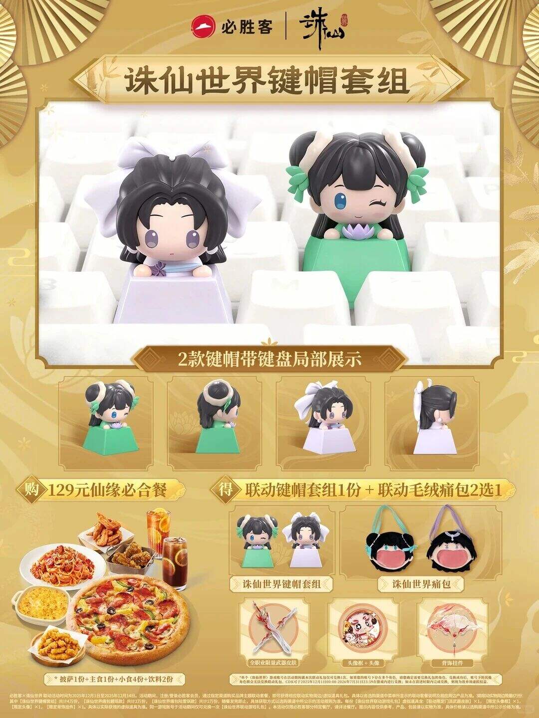 必胜客与《诛仙世界》联动将于12月1日正式开启,期间购买套餐即可获得诛仙世界定制键帽套组、主题痛包(两款可选其一)及游戏内联动礼包。