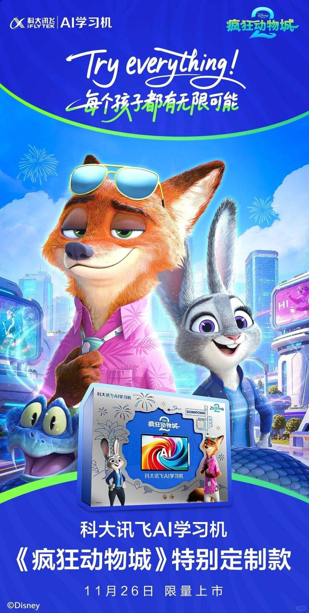 想不到动物城也迎来了教育革新!科大讯飞携手《疯狂动物城2》推出AI学习机特别定制款,已于11月26日正式限量发售。和尼克狐与朱迪兔一起,在探索中学习吧~