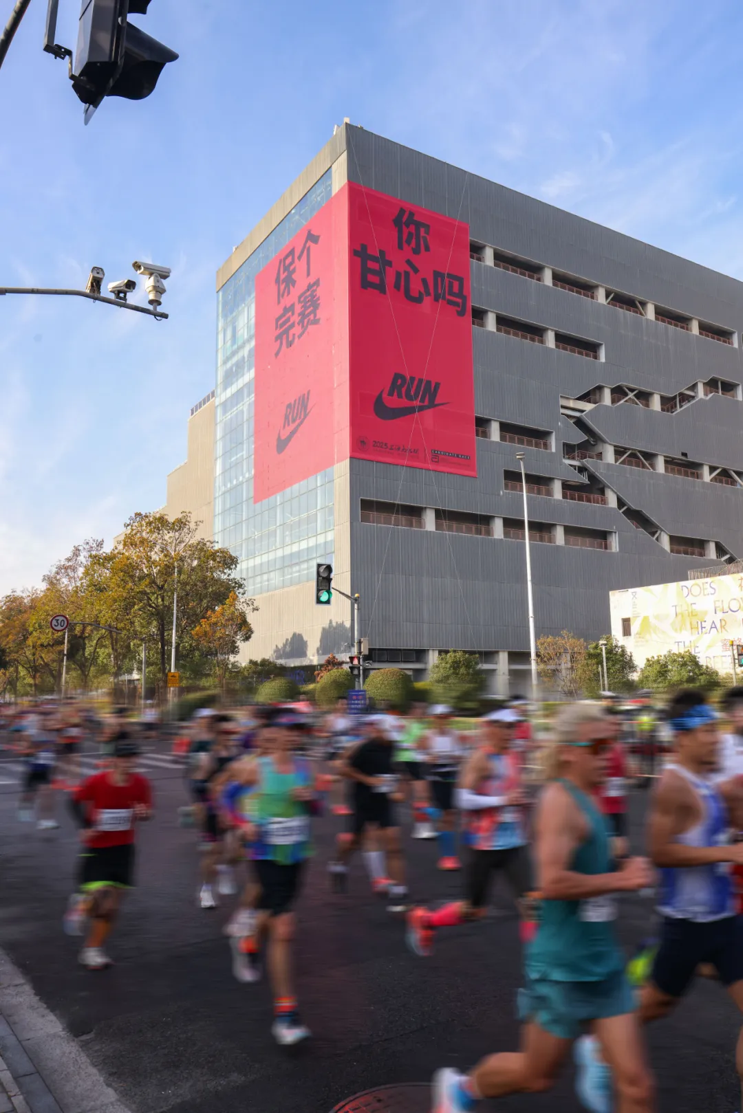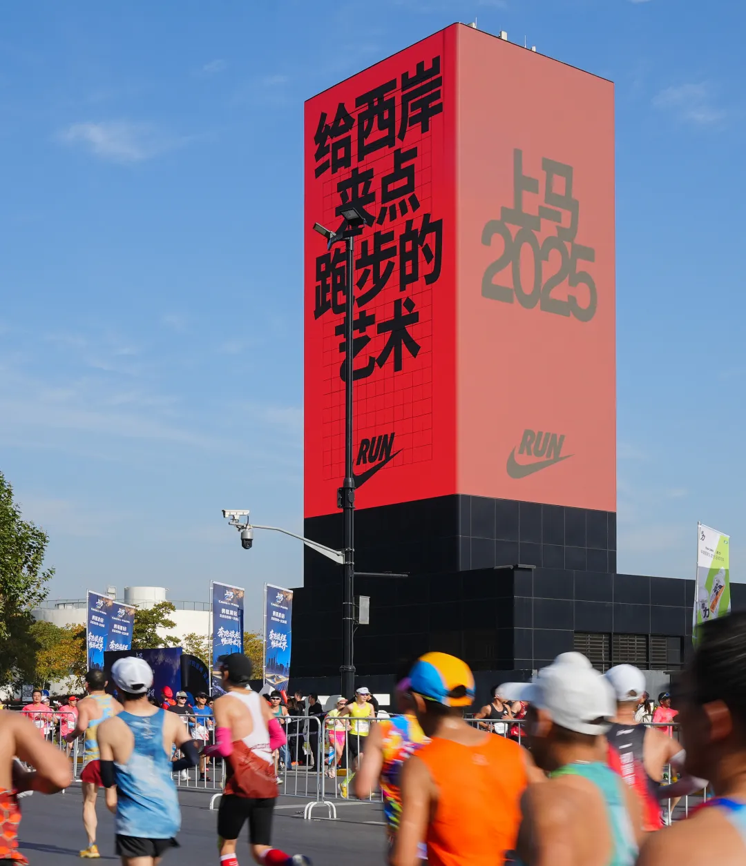 2025年的上马赛道,耐克持续以沿途巨幅海报与热血标语激励跑者。赛事加油站则特别设置互动手幅——跑者赛前写下的鼓励话语,在比赛日化为赛道旁的个性化精神助力。此外,耐克上马配速员团队也以专业配速与稳定节奏全程守护,陪伴跑者突破自我、坚定冲向终点。